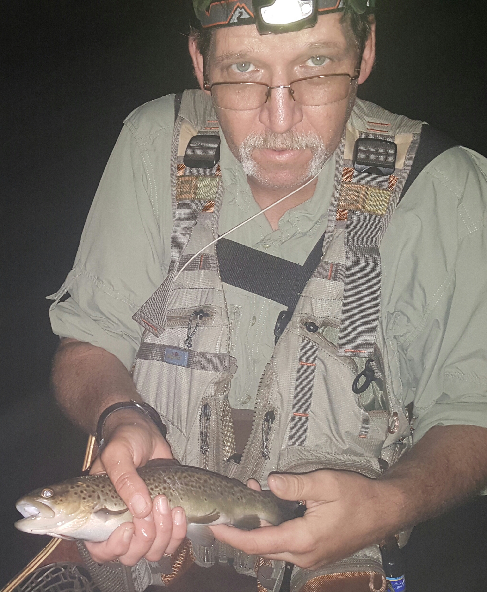 Just before a family vacation, I took a friend of mine and his son to the Farmington River for some evening and night time action. Overall, is was an active and successful night, but we did not get into any fish of significant size. Despite that, it’s always a thrill to feel the take at night- you never know for that split second if its a fish of a lifetime or not. Pictured is my friend Jeff who doesn’t get out much for ” night ” fishing and loves to go to the Farmington.